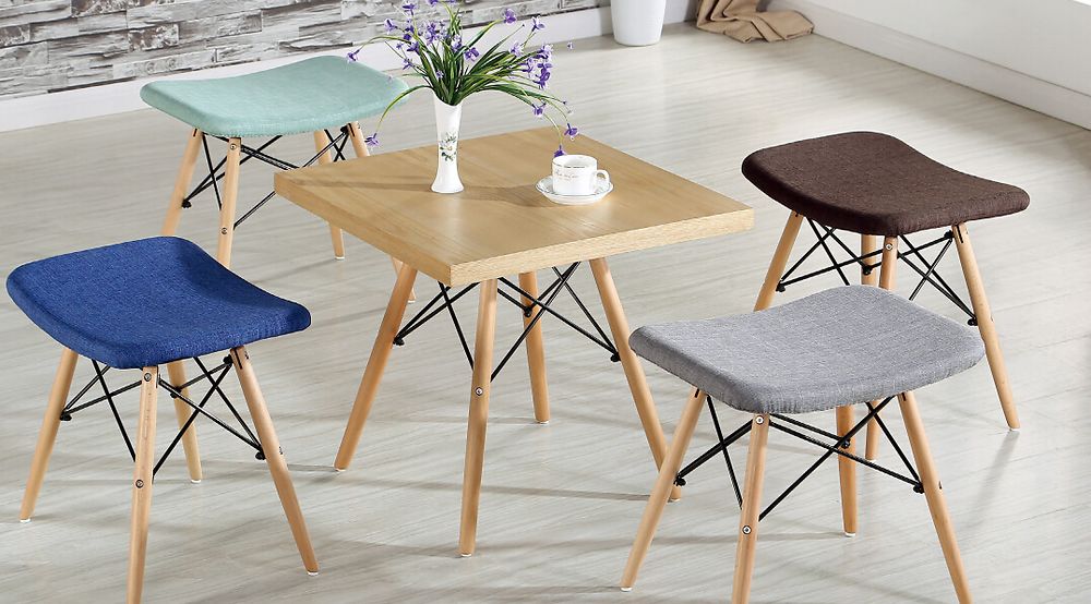 Jalat pyökkiä, istuin kangasverhoiltu, jossa vaahtomuovipehmuste.