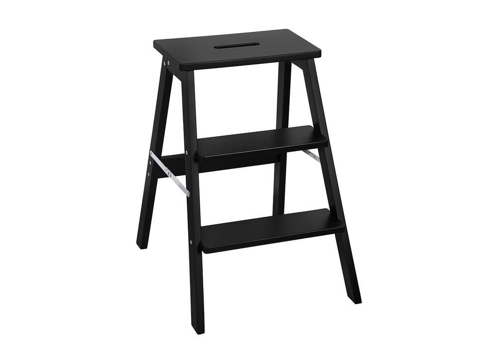 Musta META keittiötikas on käytännöllinen ja kestävä apuväline, jonka avulla korkeampien hyllyjen ja kaappien sisältö on helposti saatavilla. Kaksikerroksinen porrasjakkara on valmistettu massiivipuusta. Kompakti muotoilu ja kätevä kahva yläosassa tekevät tikkaiden siirtämisestä helppoa. Tuotteessa taittomekanismi jonka avulla jakkaran saa säilöön pieneen tilaan.