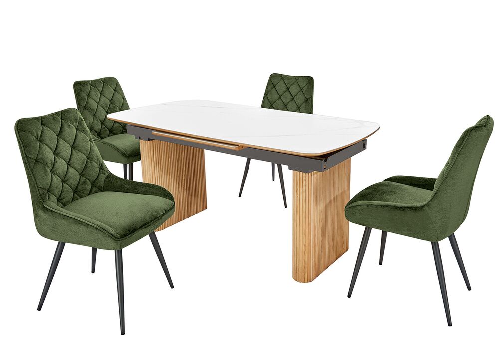 Lauren on tyylikäs beige ruokailutuoli, jossa...