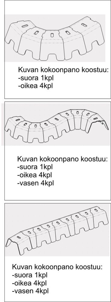 Poimi ostokoriin haluttu määrä elementtejä. Elementit muuntautuvat halutulla tavalla myös myöhemmässä vaiheessa. Katso alimmat piirroskuvat ja huomaat kuinka samoista elementeistä voi rakentaa erimallisia kokoonpanoja.Tuotteen maksimipainosuositus on 25kg
