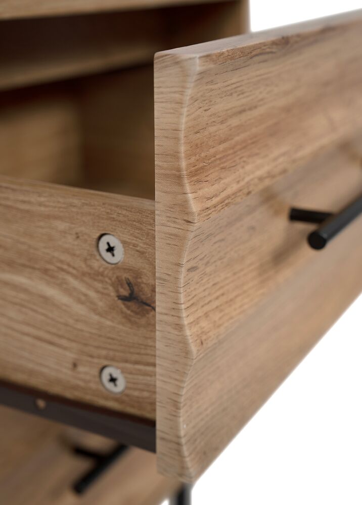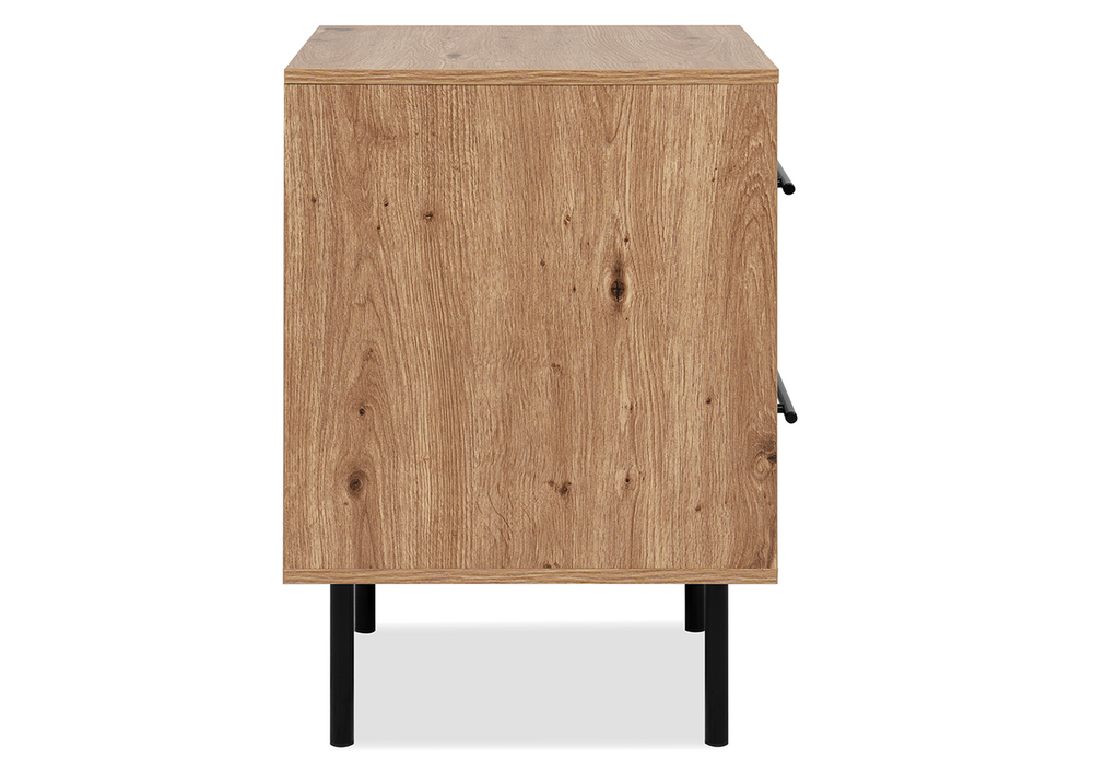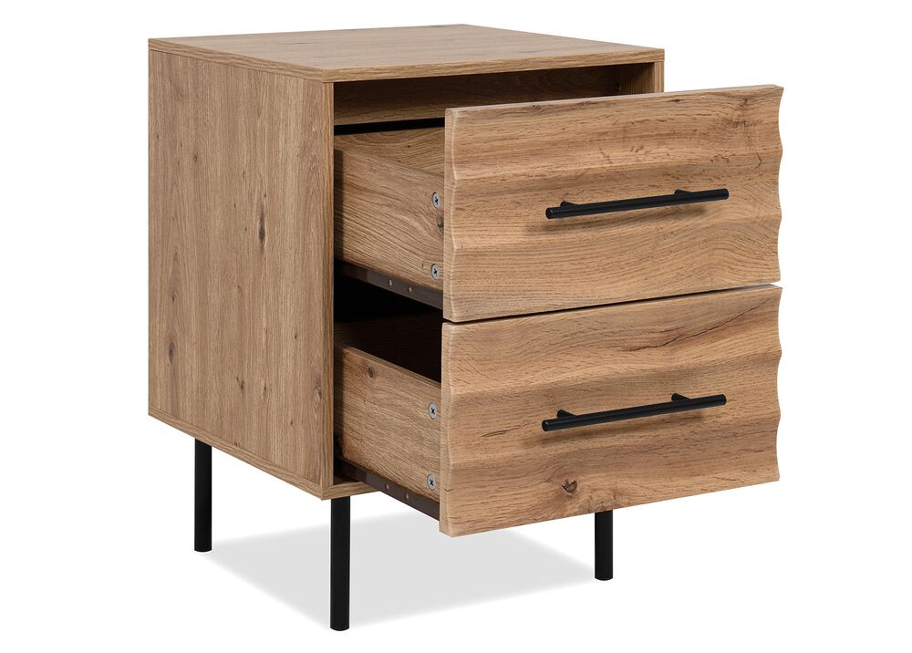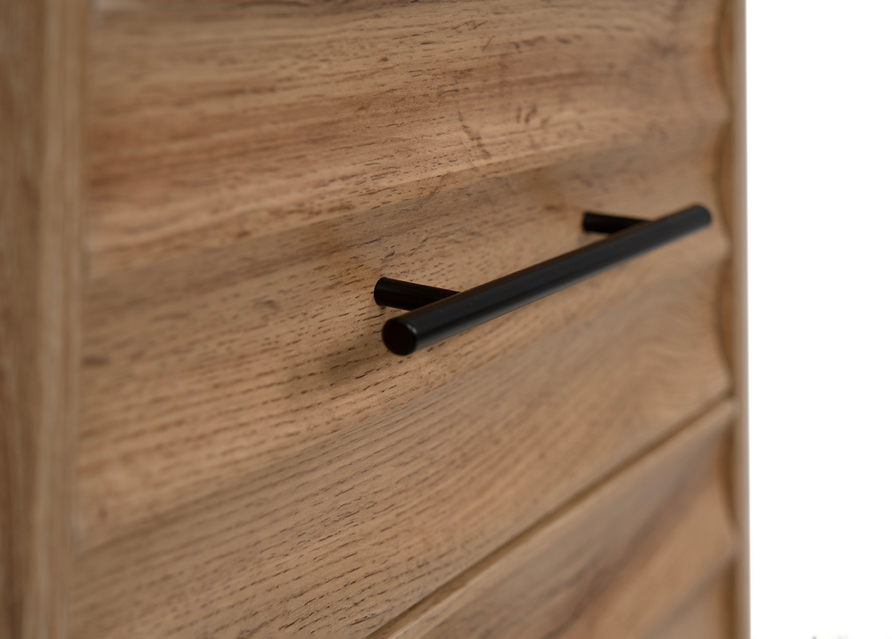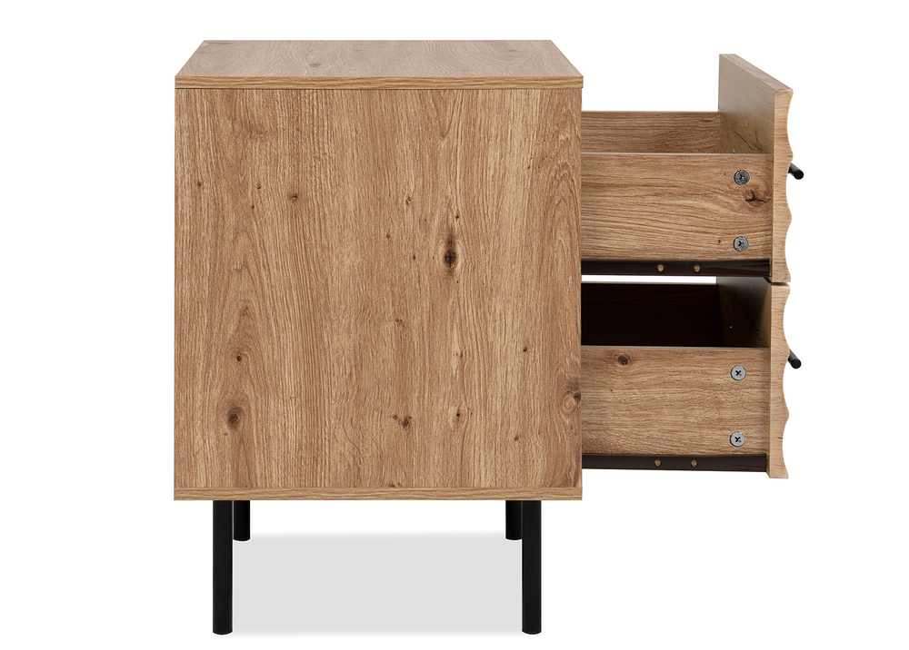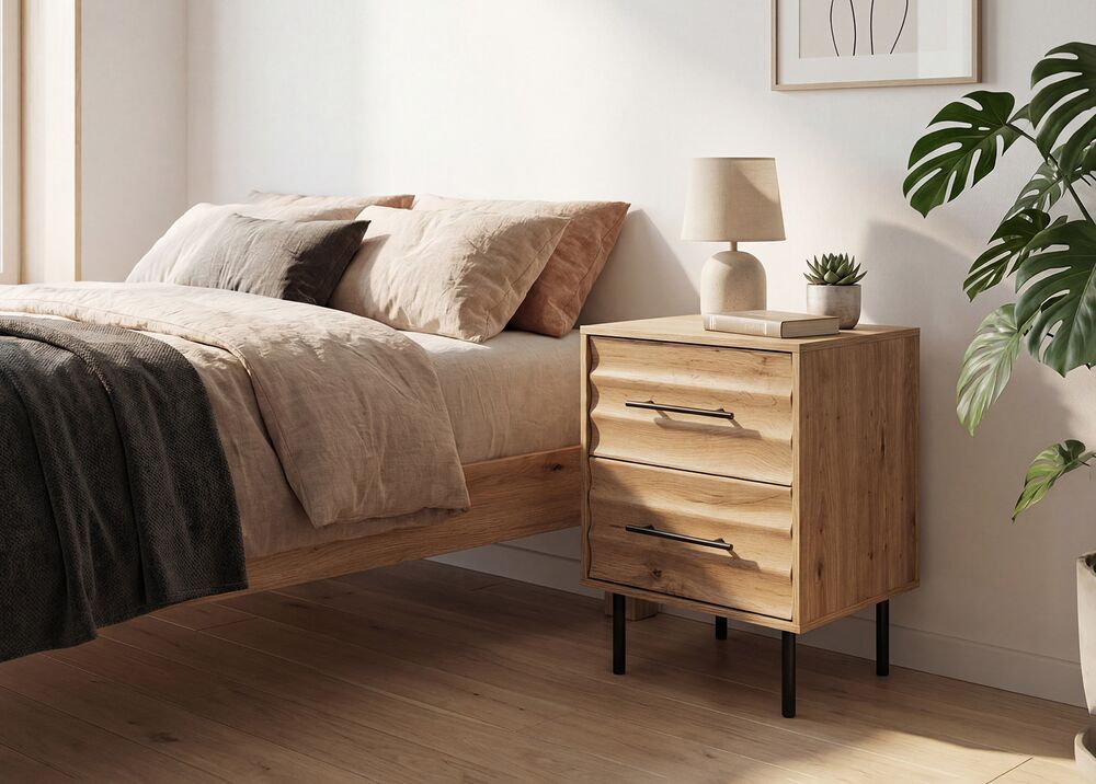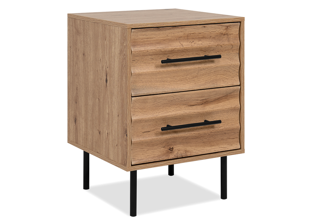 Yöpöytä FALUN tuo makuuhuoneeseen kodikkaan ja modernin ilmeen. Artisan-tammen lämmin puunsävy yhdistyy näyttävään 3D-aaltoilevaan pintaan, luoden tyylikkään ja persoonallisen kokonaisuuden.