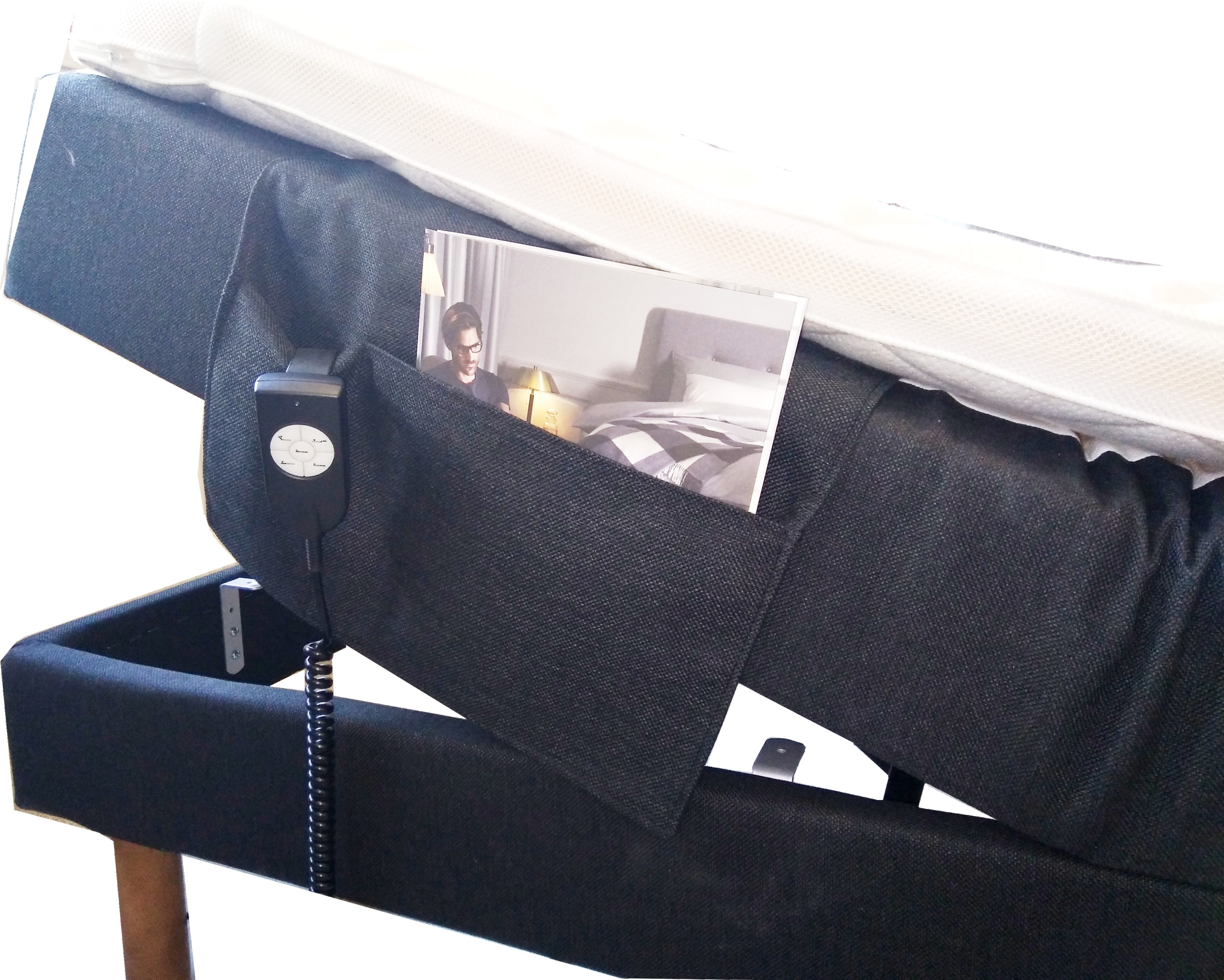 Kätevä pussukka sänkyyn jossa voit säilyttää moottorisängyn kaukosäädintä, puhelinta tai vaikka iltalukemista.