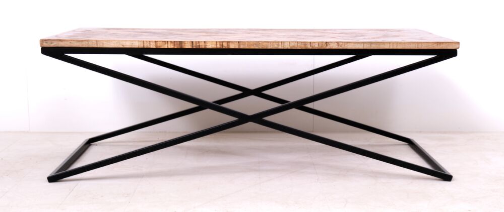 Kaunis kierrätyspuusta valmistettu sohvapöytä. Metalli jaloilla.