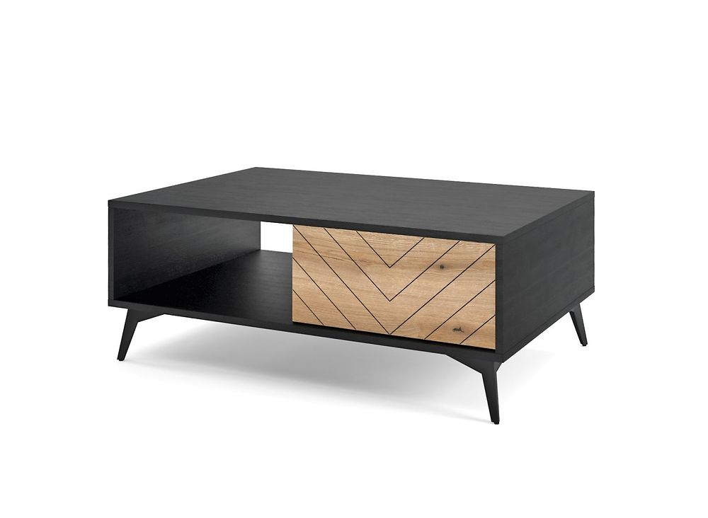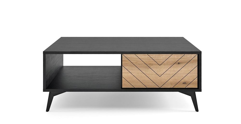 Tyylikäs ja näyttävä Dumont-sohvapöytä, josta löytyy säilytyslaatikko sekä avohylly.