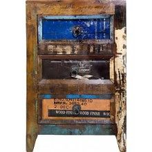 Kaikki Havanna-sarjan tuotteet elävät toista elämäänsä uudessa muodossa. Ne on valmistettu kierrätetyistä materiaaleista. Pääasiassa runkopuu on teakia, osittain myös akaasiaa, mangoa ja mäntyä. Ovien peilit on pinnoitettu erilaisten purkkien ja tynnyreiden peltimateriaaleista. Jokainen tuote on luonnollisesti täysin yksilöllinen ja kahta samanlaista on turha etsiä. Korkeus - 70 cm Leveys - 45 cm Syvyys - 35 cm Tuotteet ovat käsityötä, joten mittoissa voi olla pieniä poikkeuksia. Havanna-sarjan inspiraatiolähde on mielikuva 50-60-luvun kuubalaiselämästä. Nämä yksilölliset life style-tuotteet olivat entisessä elämässään värikkäiden talojen värikkäitä ovia, ikkunanpuitteita, lattialankkuja ja jopa ratapölkkyjä. Siksi pinnat eivät aina ole aivan tasaiset, eikä kulmat teräviä.. Tämä tuote toimitetaan tehtaalla käyttövalmiiksi koottuna. Tuotteen valmistusmateriaalit on tuotettu ekologisesti kestävällä tavalla