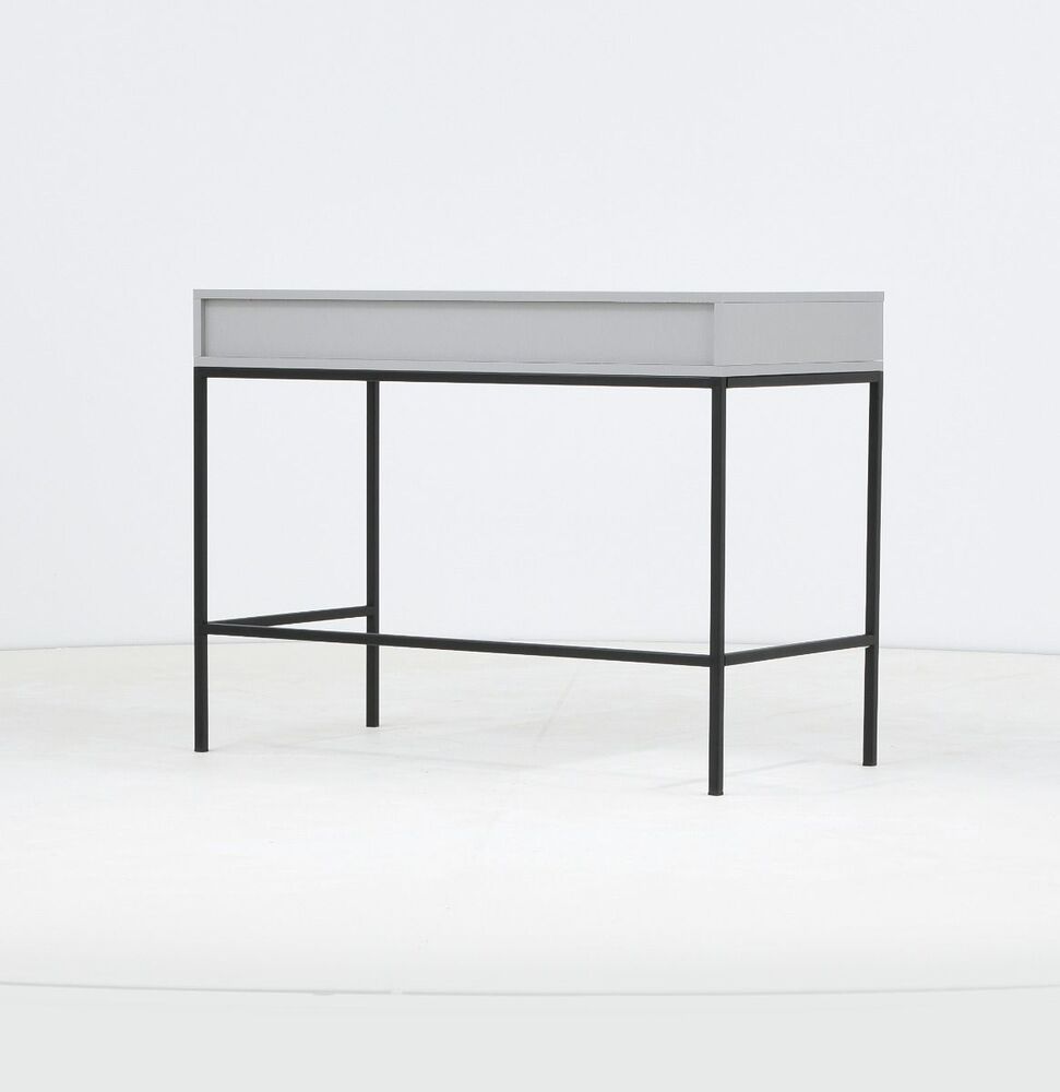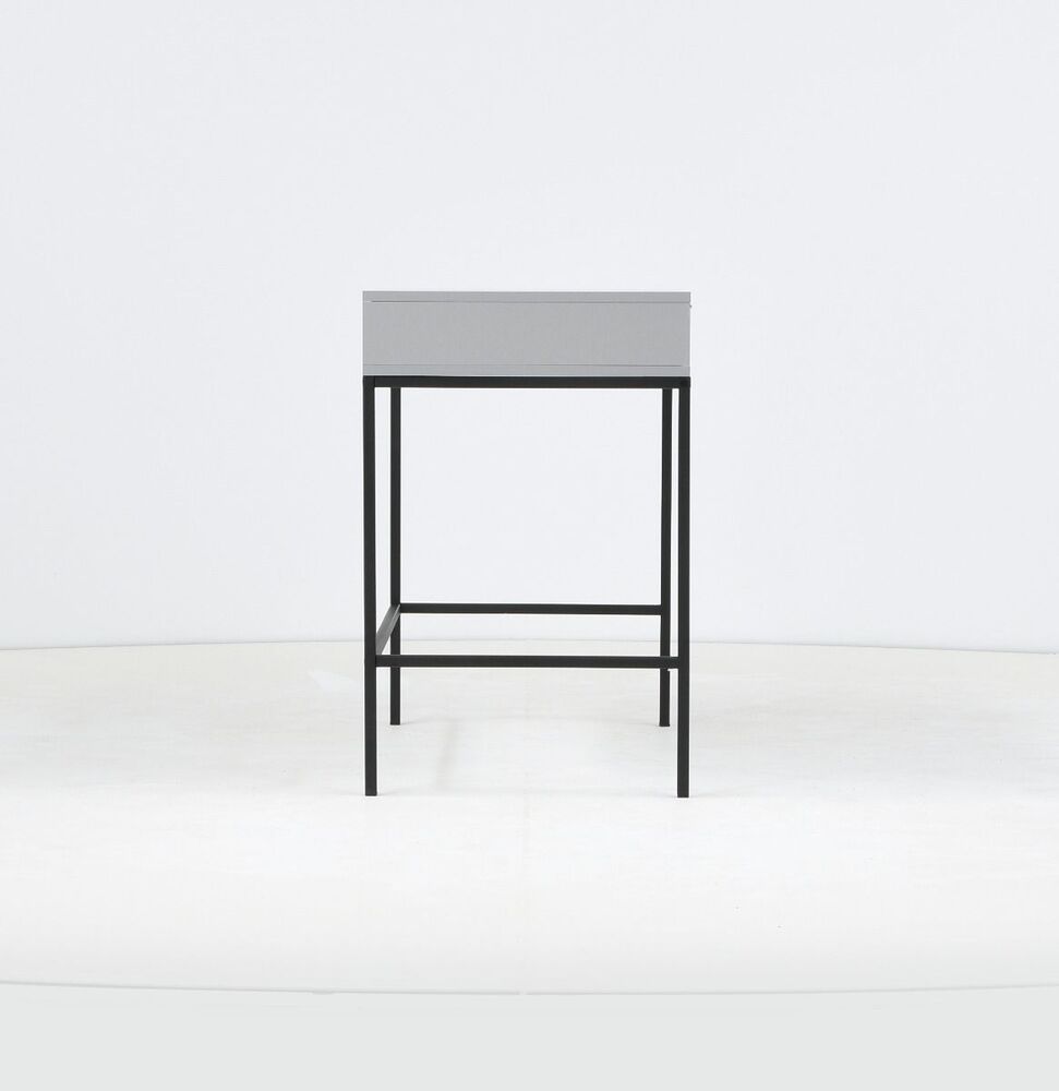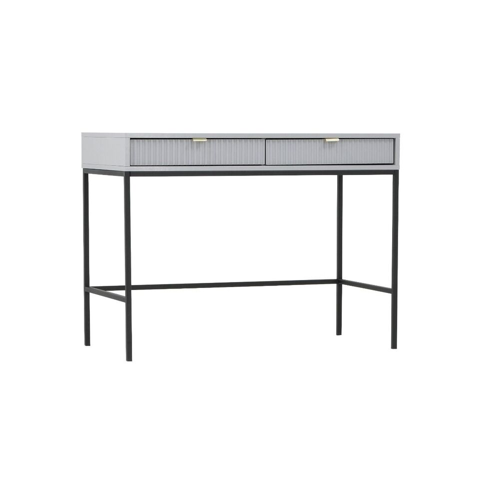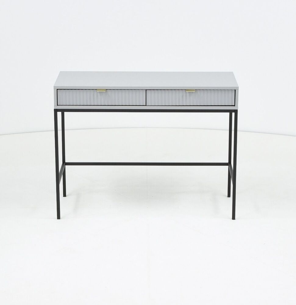 Latte-kirjoituspöytä on osa laajaa Lattemallistoa., Tuottessa on kaksi vetolaatikkoa. Kirjoituspöydän runko on 16 mm paksua laminoitua kalustelevyä, jossa on ABS-reunanauha. Mustat jalat ovat metallia ja niiden korkeus on 65 cm. Laatikoiden etusarjat ovat 18 mm paksua mdf-levyä ja niissä on harjatut kullanväriset alumiinivetimet. Etusarjoissa olevat urat antavat kirjoituspöydälle kauniin, yksilöllisen ilmeen.
