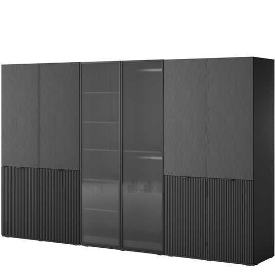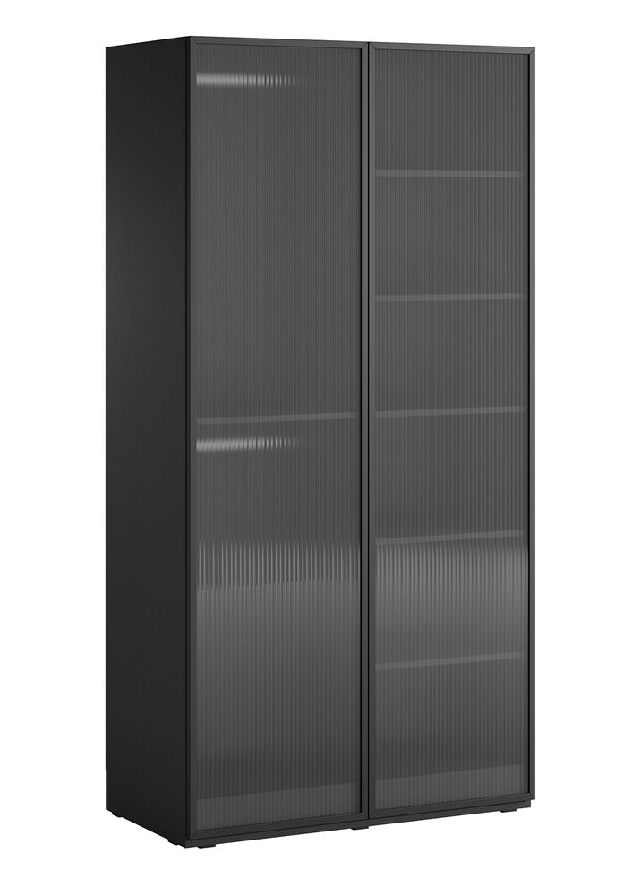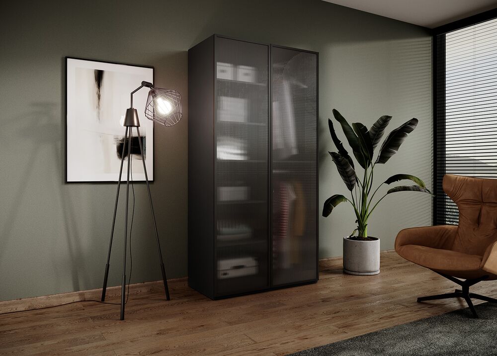 Tyylikäs mustan värinen Latte-vaatekaappi läpikuultavilla ovilla. Tässä vaatekaappissa on runsaasti säilytystilaa. Kaapin ovien takana on hyllylevyt sekä vaatetanko. Yhdistämällä useamman läpinäkyvän- tai umpiovikaapin keskenään, saat tyylikkään säilytysratkaisun. Ovissa push to open mekanismi