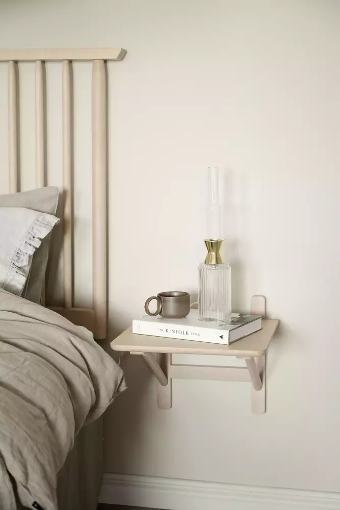 Camrose yöpöytä antaa makuuhuoneeseen tyylikkään ilmeen. Seinälle kiinnityksen ansiosta tuote on helposti sovitettavissa sängyn korkeuden mukaisesti.