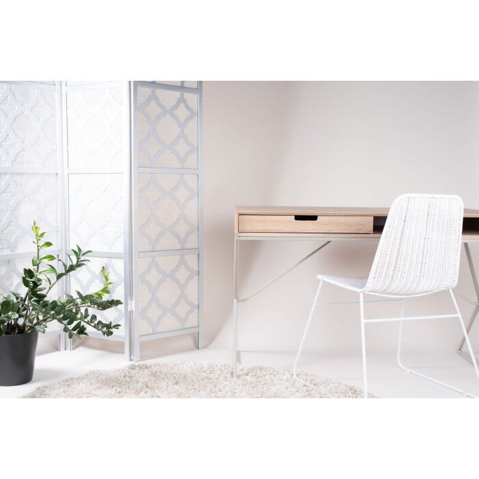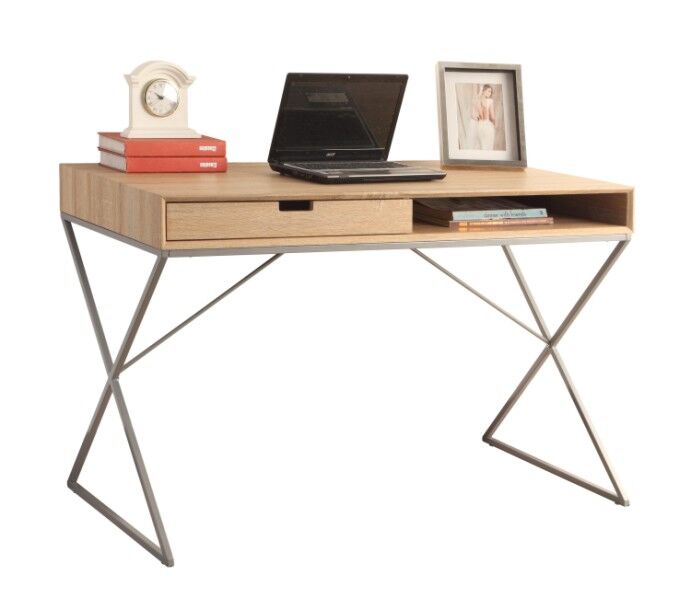 Materiaali mdf-levy jossa tammilaminointi. Maalatut metallijalat.