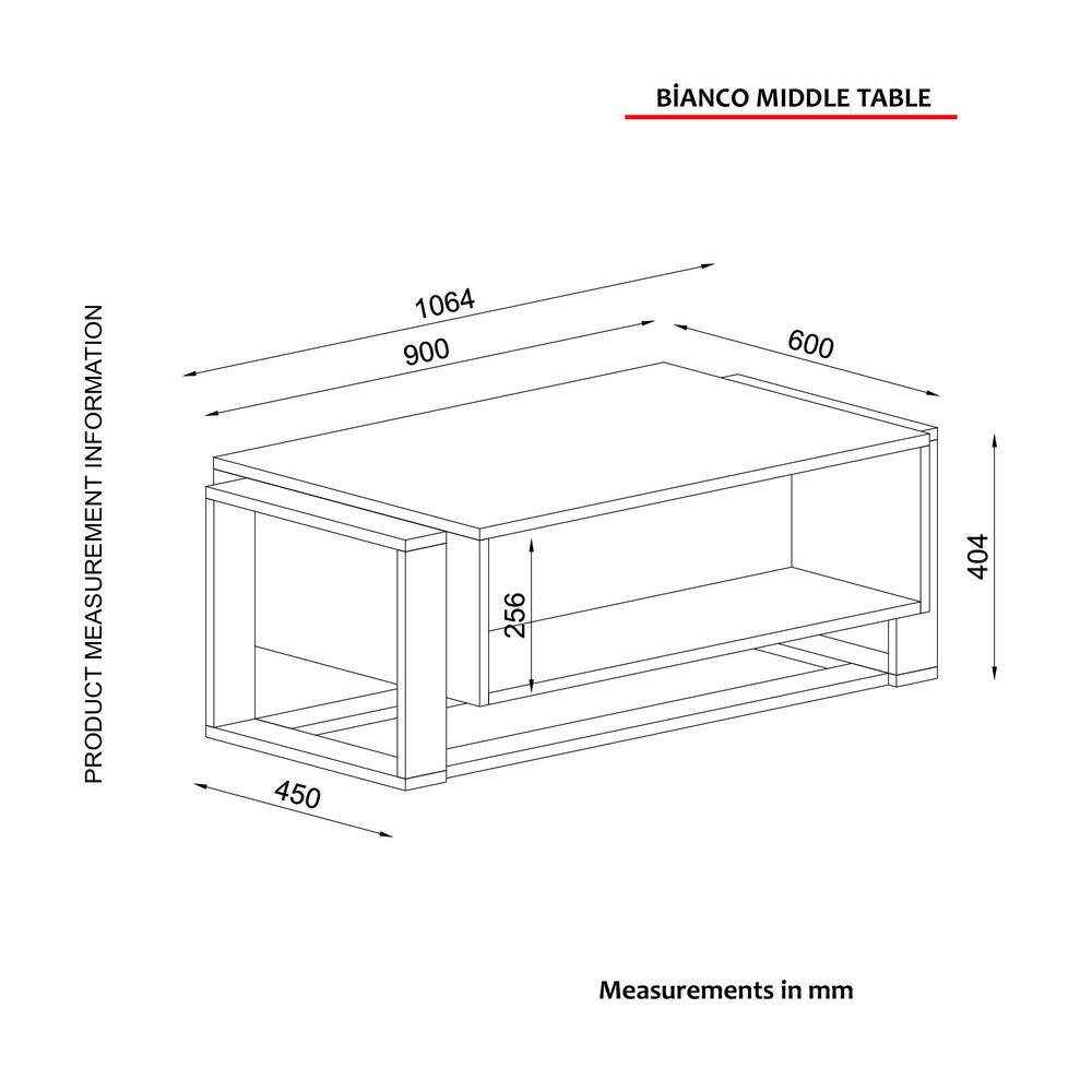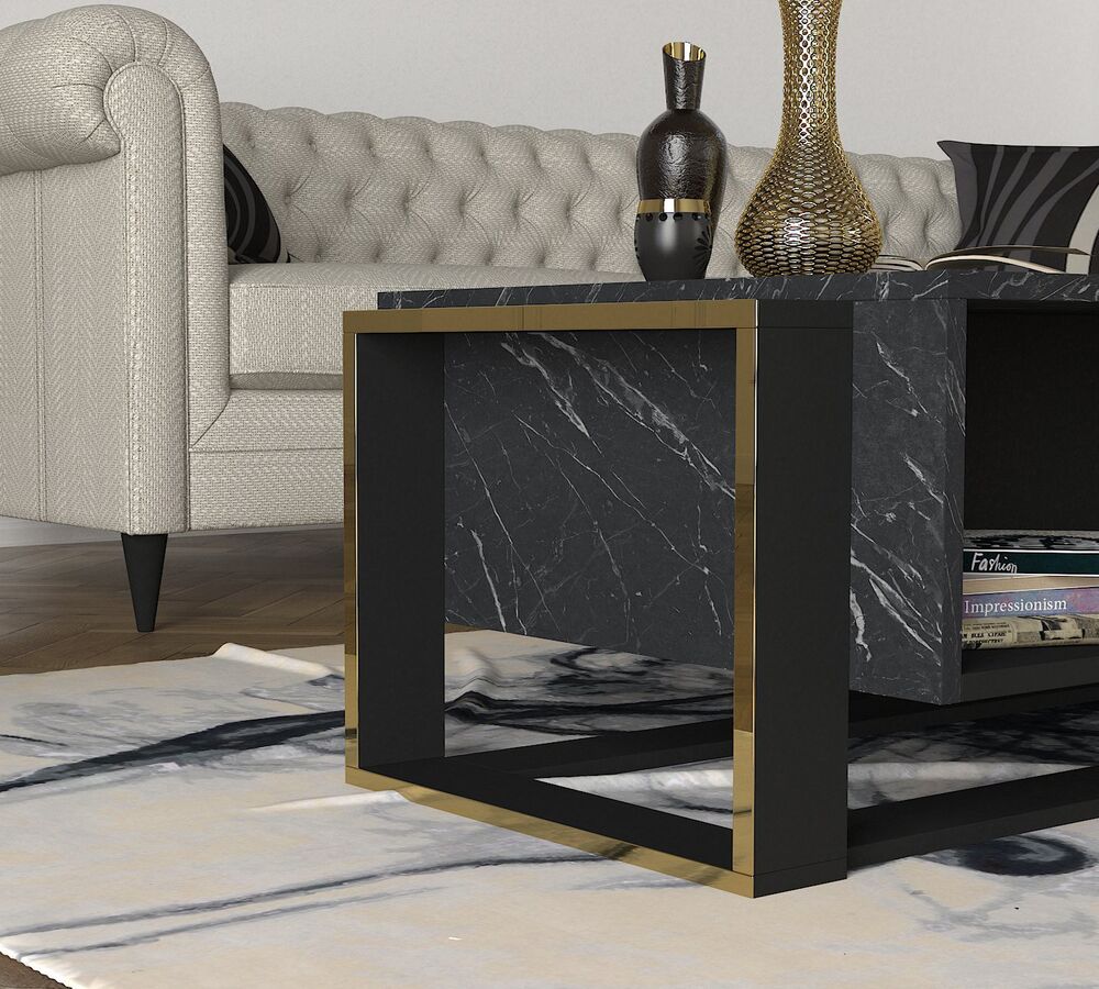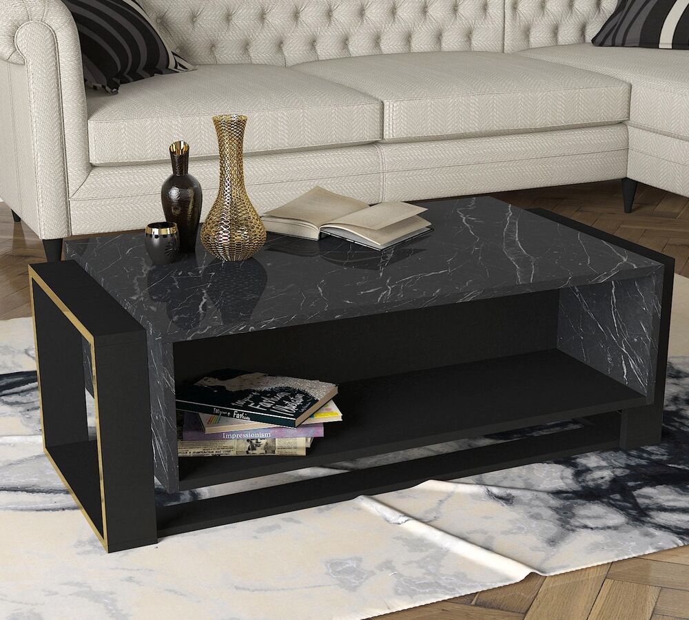 Bianco sohvapöytä, jossa marmorikuviotu pinta.