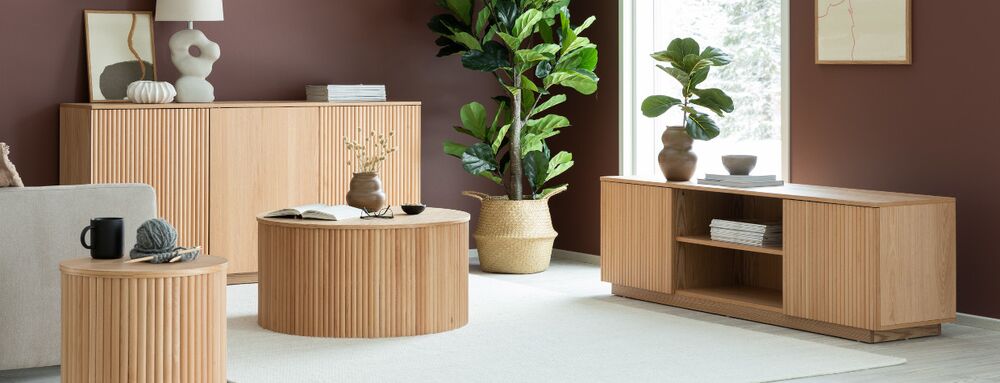 Upea, luonnonvärinen Verso-sohvapöytä, jonka reunat on koristeltu pyökkirimoilla. Pöydän runko on mdf-levyä ja tammiviilua. Pöydän halkaisija on 80 cm ja korkeus 40 cm. Toimitus valmiiksi koottuna.