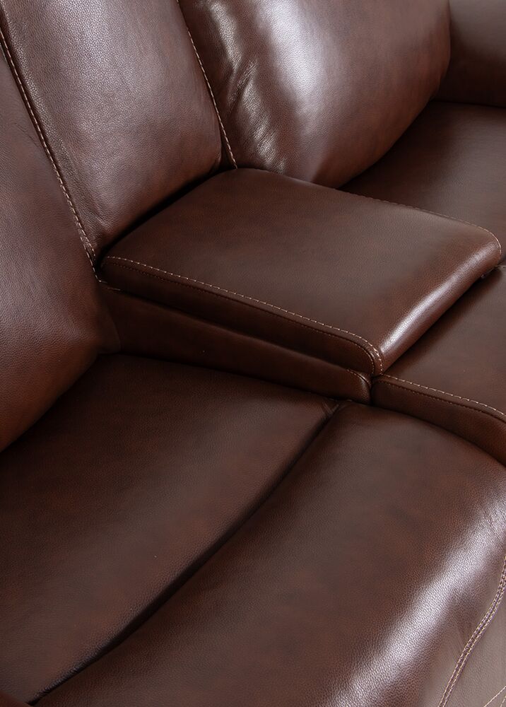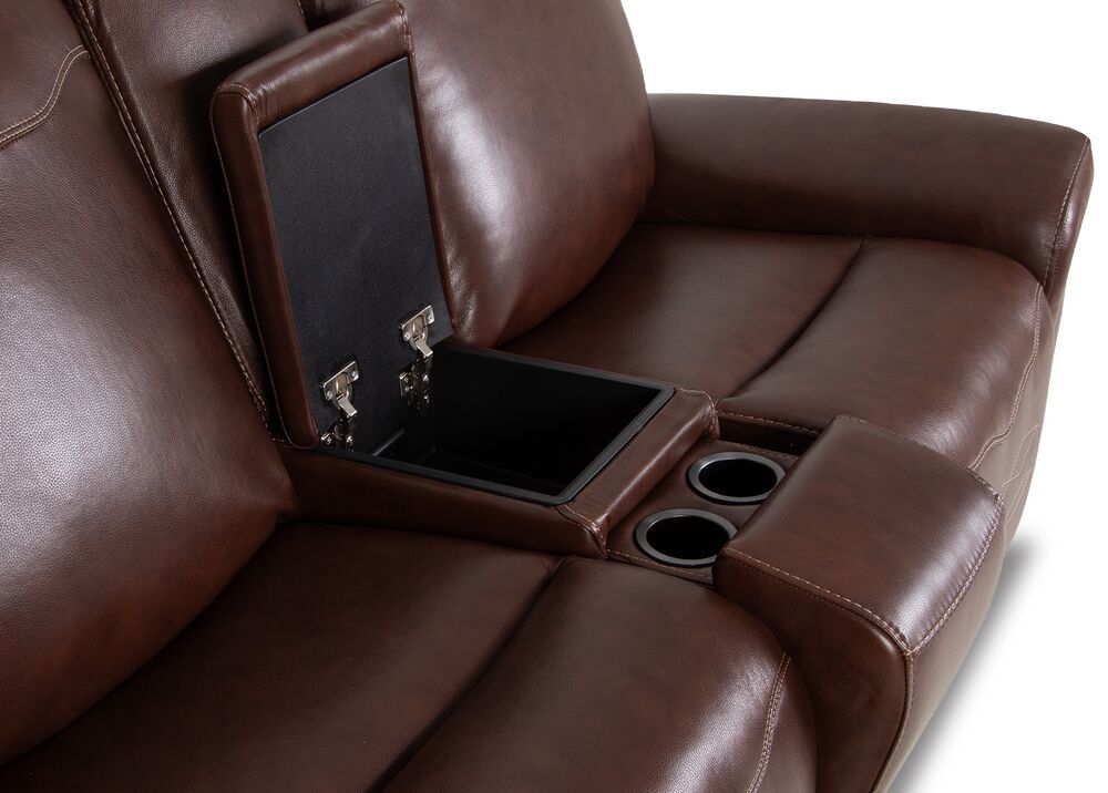 Lämmin ruskea nahkaverhoilu ja huolelliset koristetikkaukset tekevät kokonaisuudesta ajattoman. Keskellä sijaitseva käsinoja, jossa on säilytystila ja mukitelineet, lisää käytännöllisyyttä ja tekee sohvasta täydellisen valinnan rauhallisiin lepohetkiin, elokuvailtoihin tai olohuoneen katseenvangitsijaksi.
