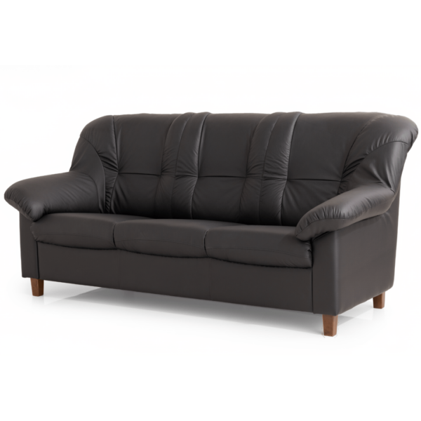 Kuvassa oleva sohva on verhoiltu mustalla Amalfi-nahalla. Sohvan kulutuspinnat ovat aitoa nahkaa, taustat ovat verhoiltu keinonahalla. Saatavana usealla eri värillä.