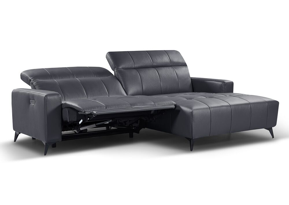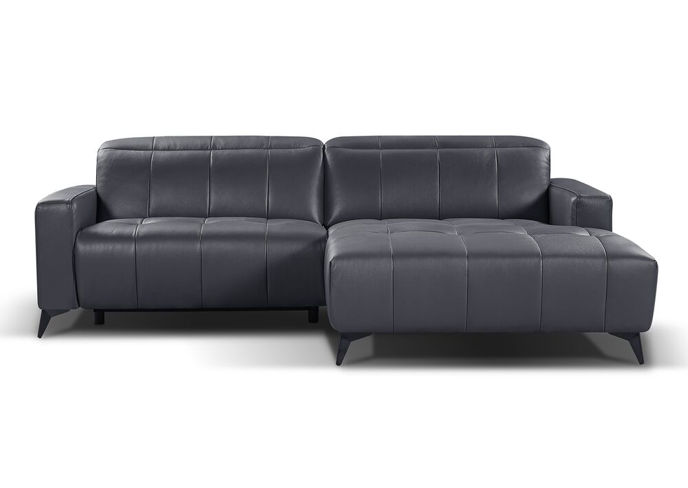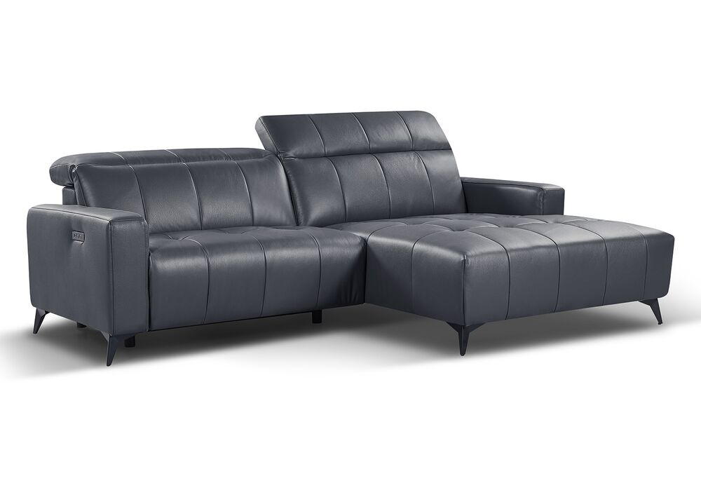 Elmira avokulmadivaani on tilava ja viihtyisä oikeakätinen kulmadivaani, joka tarjoaa runsaasti istumatilaa olohuoneeseen, tv-huoneeseen tai avokeittiön istuma-alueelle. Sohvan harmaa nahkaverhoilu luo raikkaan, ajattoman ilmeen, joka sopii monenlaiseen sisustukseen skandinaavisesta moderniin ja minimalistiseen tyyliin. Sen neutraali sävy tuo tilaan lisää valoa ja avaruutta. Sähkökäyttöinen jalkatuki ja selkänoja lisää luksusta ja mukavavuutta. USB liittimestä lataat vaikka kännykän.