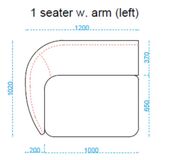 1-istuttavan keskipalan leveys 100cm ja syvyys 112cm. Reunapalan leveys on 120cm ja syvyys 112cm Divaani osan leveys on 120cm ja syvyys 160cm. Kulmapalan leveys on 112cm ja syvyys 112cm. Sohvan istuinkorkeus on 42cm ja kokonaiskorkeus 76cm