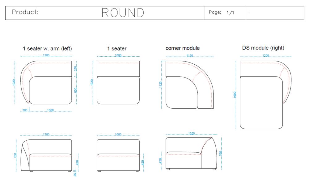 Upea Round modulisohvamallisto josta saat rakennettua unelmiesi kokonaisuuden. Mallia on helppo muokata tarpeen mukaan. Sohvasta voit rakentaa suoran- tai kulmamallisen sohvan.