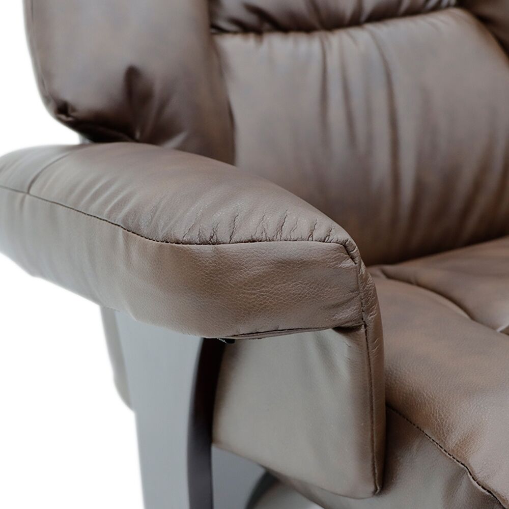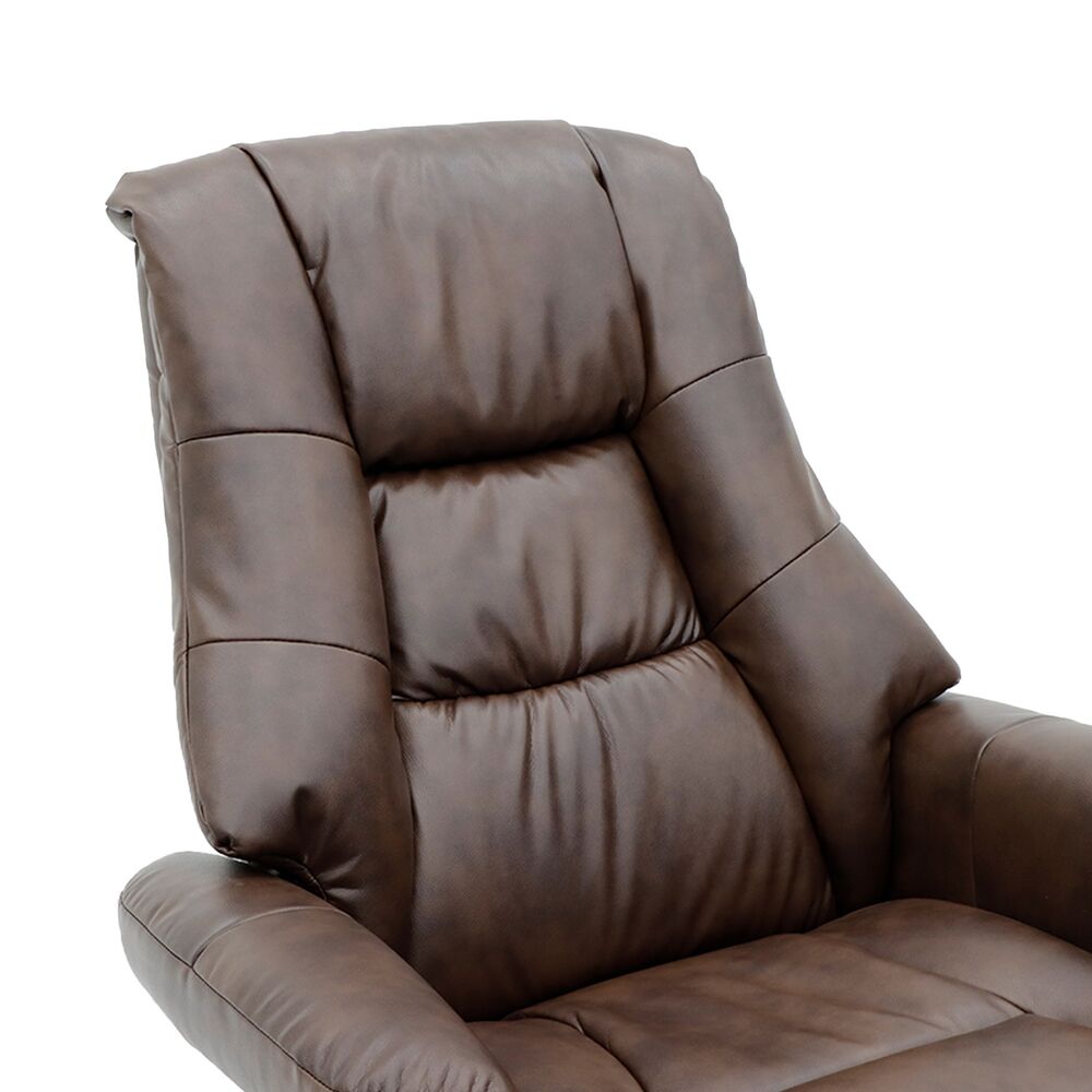 Nauti täydellisestä rentoutumisesta tämän laadukkaan tv-tuolin avulla. Tyylikäs ruskea keinonahkaverhoilu ja tummanpuinen runko luovat lämpimän ja modernin ilmeen, samalla kun ergonominen muotoilu ja säädettävät ominaisuudet takaavat maksimaalisen mukavuuden.