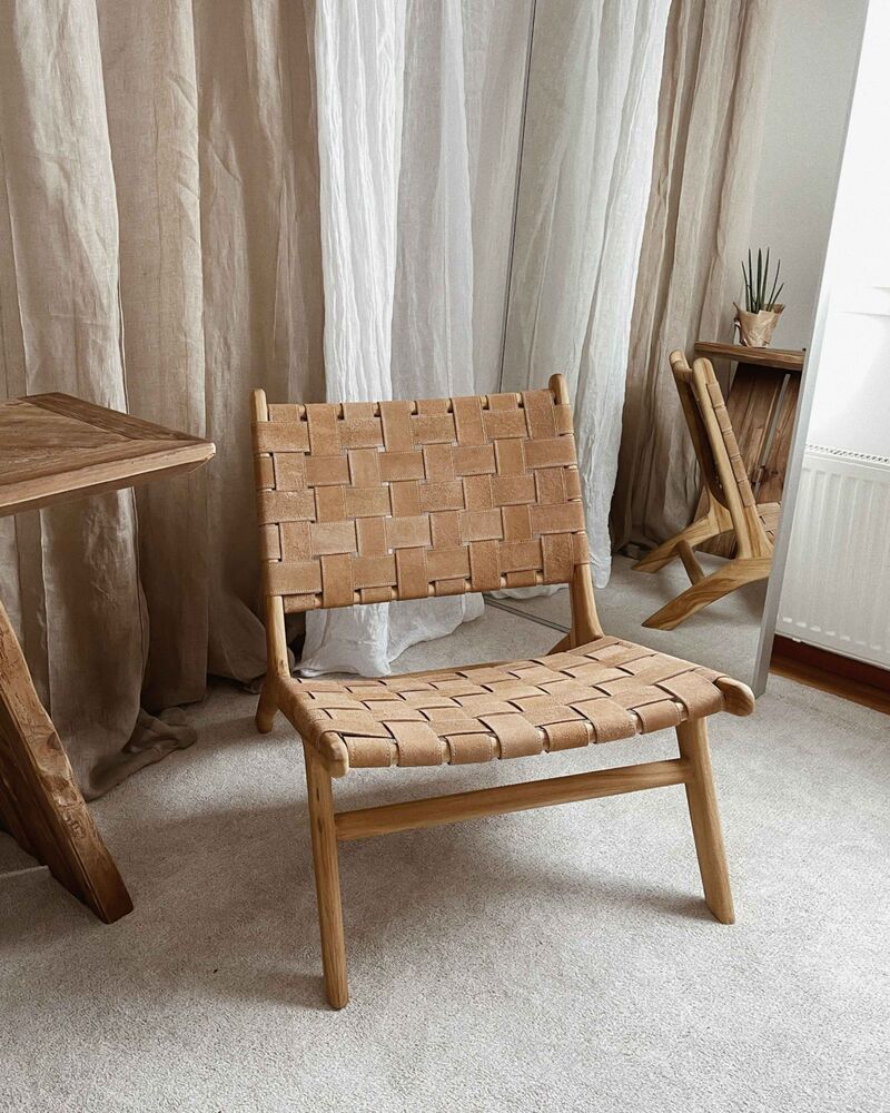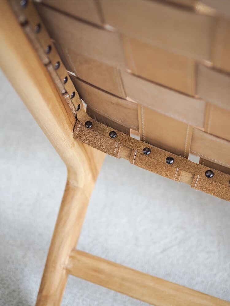 Tuolin runko massiivitiikkiä. Punos laadukasta mokkanahkaa. Toimitetaan valmiiksi koottuna