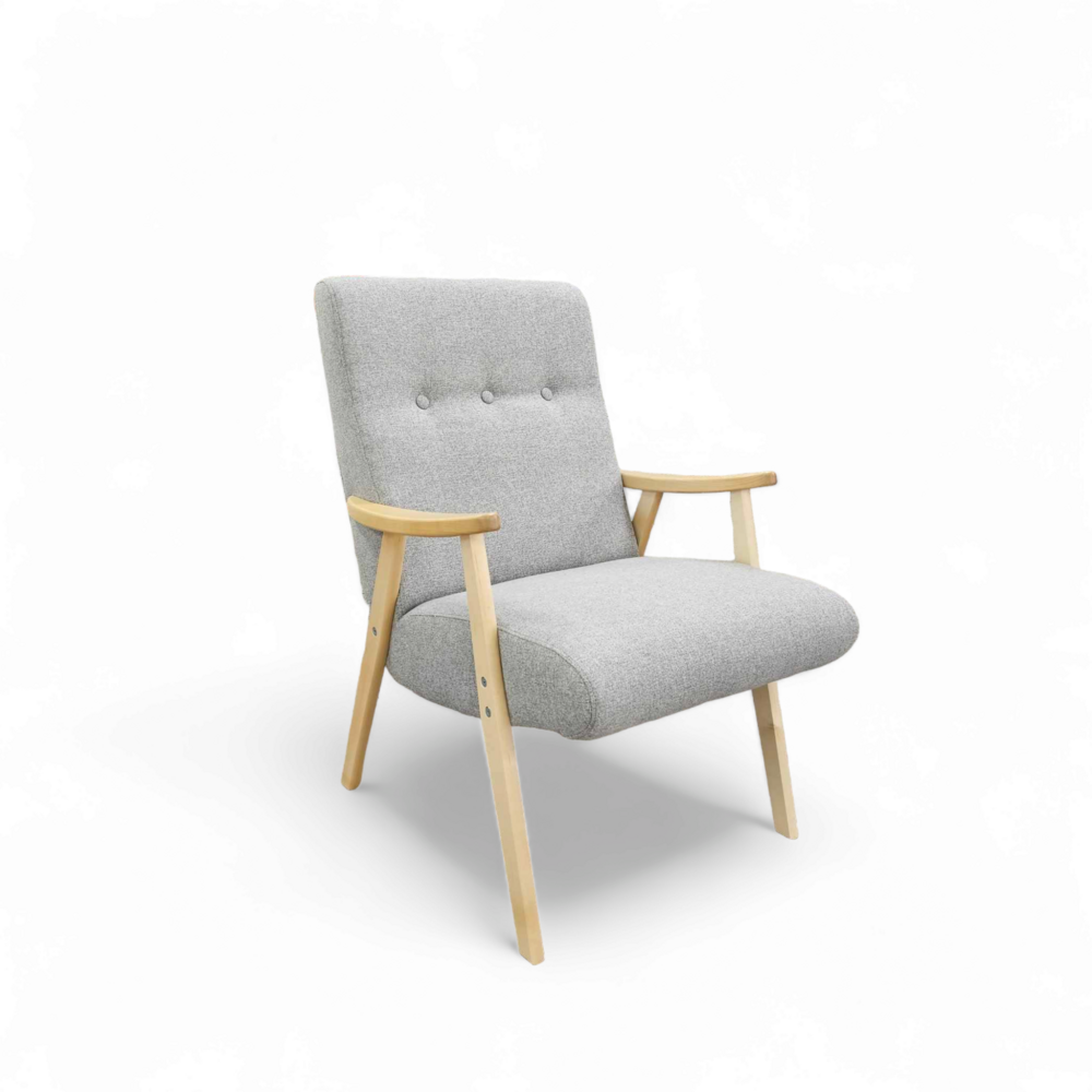 Kaunis ja siro lepotuoli, jota saatavilla useilla eri väreillä. Kankaana laadukas Inari huonekalukangas, jonka hankauskesto 49 000 martindale. Lisähintaan myös upealla samettisella ja eläväpintaisella Terra kankaalla, jonka hankauskesto jopa 100 000 martindale. Puuosat saatavilla luonnonvärisenä, tai pähkinän ruskeana