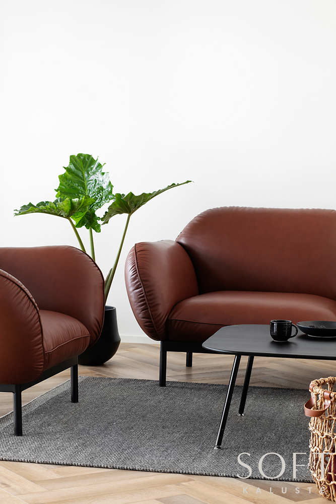 SUMO on saanut nimensä sen pehmeän ja muhkean istuinosan mukaan. Nojatuolin täyteläiset pehmusteet ja vastustamaton pehmeys kutsuu syleilyynsä ja tarjoaa miellyttävän istuinmukavuuden, Myötäilevät pehmusteet muotoutuvat yksilöllisesti istujan mukaan ja takaavat mukavan ja rennon oleskelun. Sohvan tukeva ja ryhdikäs metallirunko sekä sirot jalat yhdessä muhkeiden pehmusteiden kanssa antavat kokonaisuudelle miellyttävää visuaalista kontrastia. istuimissa pehmusteena on muotoutuva memoryfoam ja kimmoisa HR-vaahtomuovi. Selkätyynyt ovat pehmustettu paksulla pehmeällä vaahtomuovilla ja vanukerroksella. Sumo nojatuoli valmistetaan suomessa.