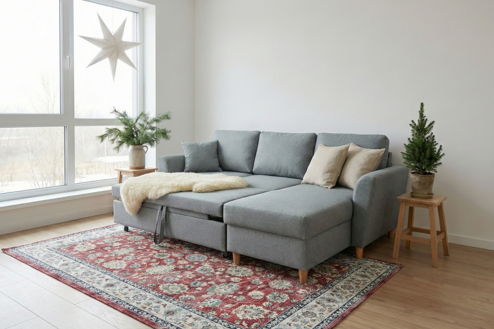 Kaunis vuodekulmadivaani isolla vuodekoolla
