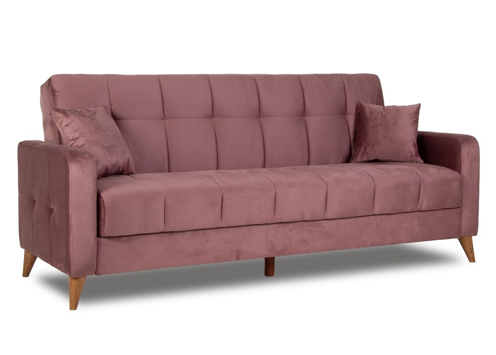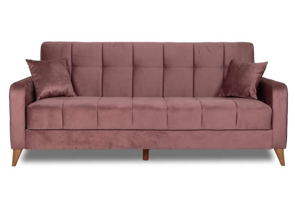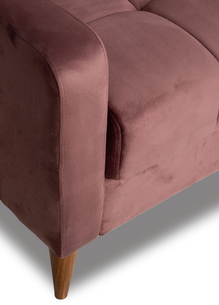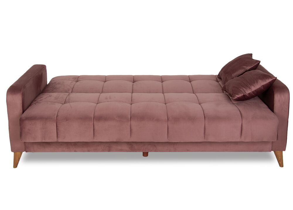 Latika sohva sopii mainiosti vierashuoneeseen tai mökille. Kätevällä vuodemekanismilla majoitat kaksi vierasta tarpeen vaatiessa. Viininpunainen samettikangas on helppo pitää puhtaana