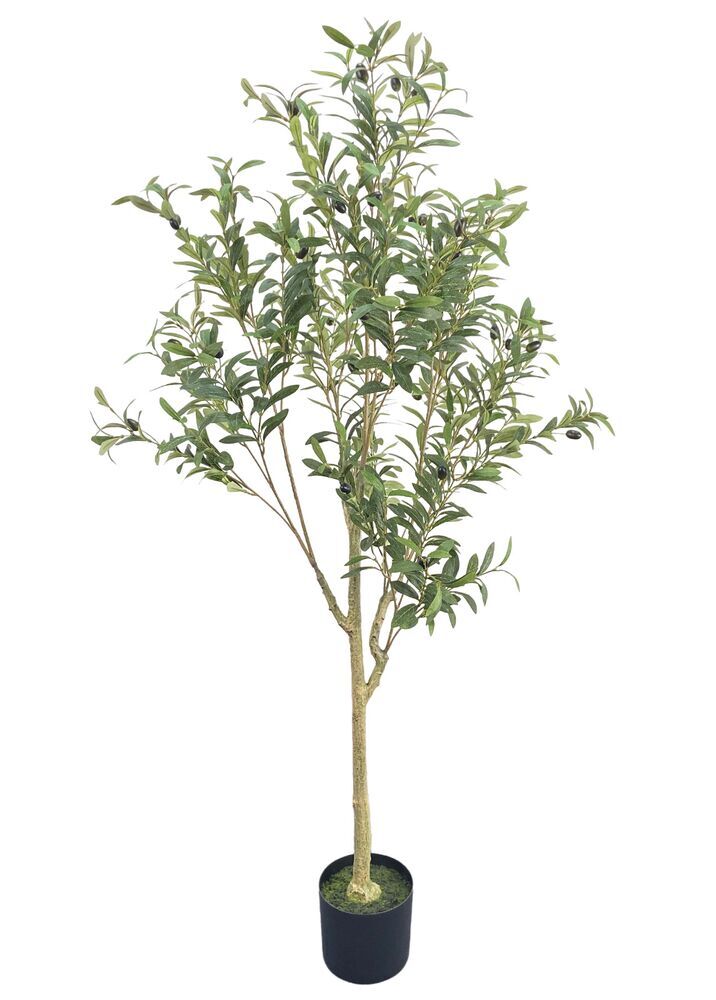 Oliivipuu 150 cm – elegantti ja luonnollinen tekokasvi, joka tuo tilaan Välimeren tunnelmaa. Hennot harmaanvihreät lehdet ja pienet koristeelliset oliivit luovat aidon ja rauhallisen ilmeen.