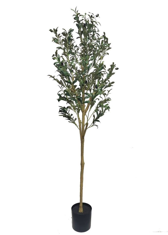 Oliivipuu 160 cm – elegantti ja luonnollinen tekokasvi, joka tuo tilaan Välimeren tunnelmaa. Hennot harmaanvihreät lehdet ja pienet koristeelliset oliivit luovat aidon ja rauhallisen ilmeen.