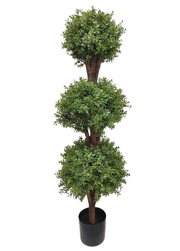 Puksipuu 130 cm – tyylikäs ja ryhdikäs tekokasvi, joka tuo sisustukseen puhdasta ja selkeää vihreyttä. Kolme pyöreän lehtipallon ansiosta kasvi näyttää modernilta ja huolitellulta, ja se sopii niin kotiin kuin toimistoon. Erinomainen valinta, kun haluat koristeellisen aksentin, joka pysyy aina kauniina.