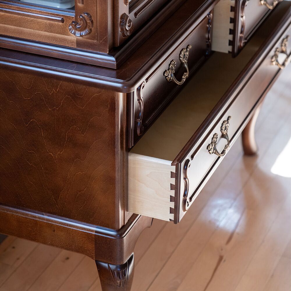 Kotimainen Laitalan valmistama ja käsityönä perinteisiä menetelmiä käyttämällä valmistettu Talonpoikaisrokokoo hopeakaappi